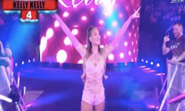 Kelly Kelly llegó a un cuadrilátero en el que se encontraban Sasha Banks, Melina y Tamina. La luchadora, es una de las superestrellas más reconocidas durante la época de las Divas en WWE. Kelly Kelly fue muy bien recibida por el público de St Luis entre aplausos.