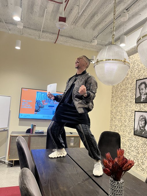 A través de su cuenta de Twitter, el luchador subió una foto en las oficinas de Universal Music Group confirmando que había firmado un contrato con esta compañía y las subsidiarias Thump Records y Virgin Music.