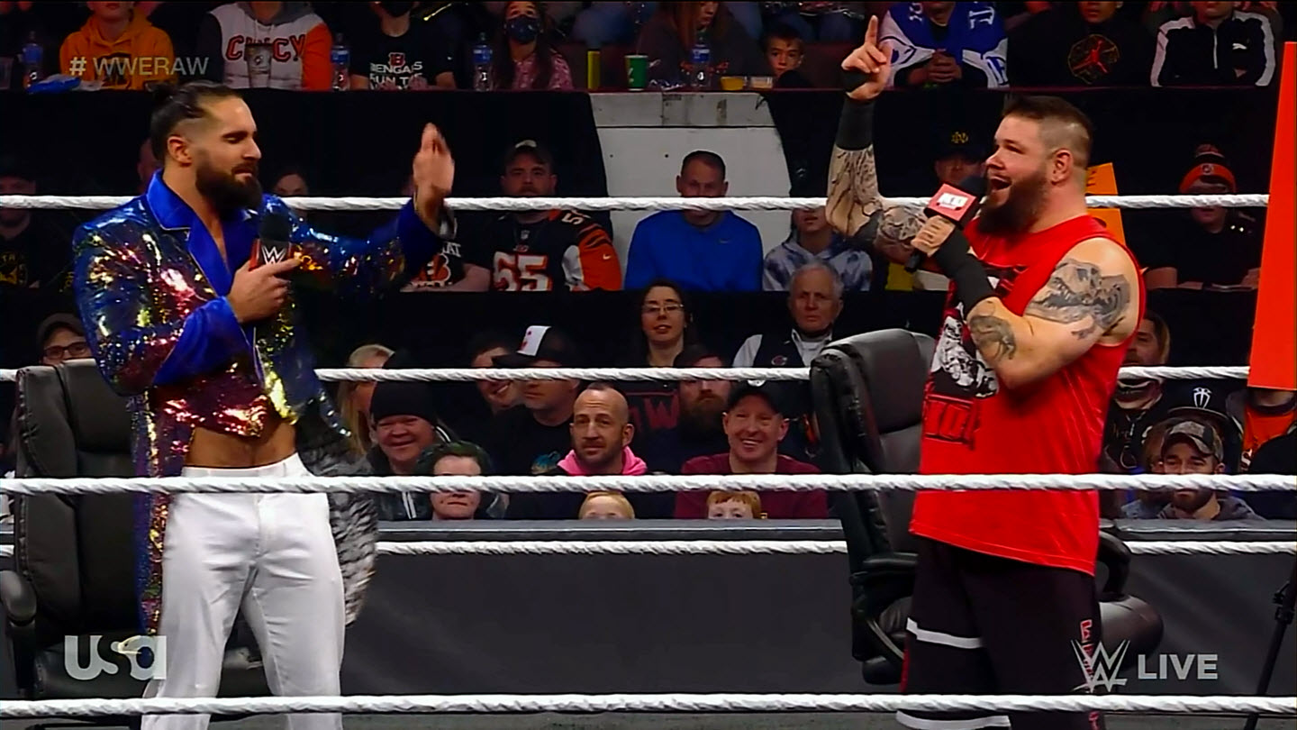 Seguidamente, Kevin Owens indicó que quería también obtener la oportunidad de competir en esa contienda sin necesidad de ganar una lucha clasificatoria, pero fue interrumpido por Austin Theory.