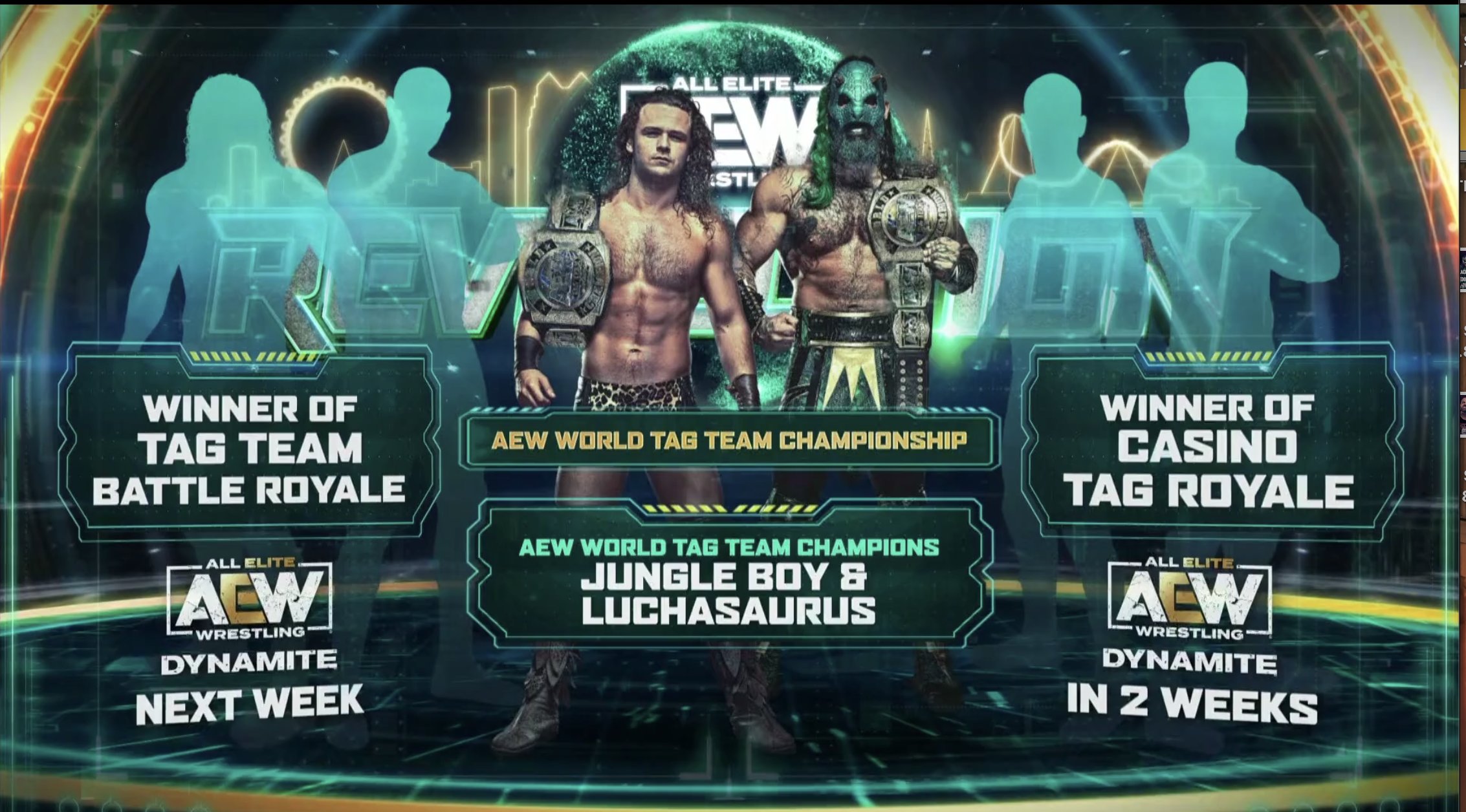 Por ahora los oponentes de Jungle Boy y Luchasaurus no están confirmados, pero se conoce que ambos equipos saldrán de dos luchas Battle Royale que realizarán en la siguiente y subsiguiente edición de AEW Dynamite.
