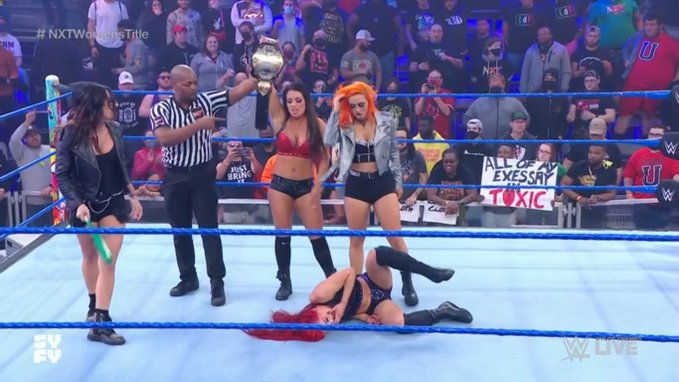 El dominio estuvo muy repartido, pero Kay Lee Ray y el árbitro fueron distraídos por Gigi Dolin y Jacy Jayne, lo que le otorgó a Mandy una oportunidad de oro para rematar a Ray y así retener su campeonato.