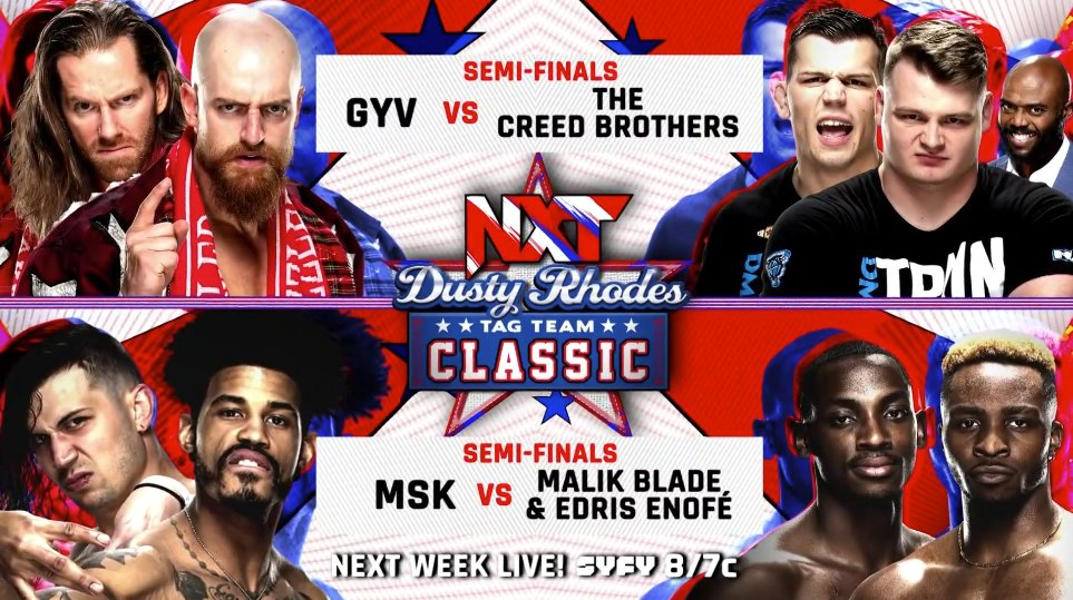 - Semifinales Dusty Rhodes Tag Team Classic: MSK vs. Malik Blade y Edris Enofé