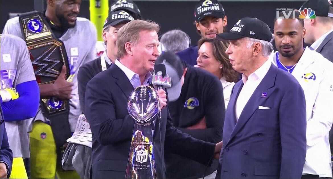Anoche no fue excepción, y se pudo ver al jugador de Los Angeles Rams, Leonard Floyd, portando el Título por el estadio durante la celebración del Campeonato de la NFL.