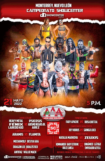 Sin mayor dilación, te dejamos con la cartelera completa AAA Campeonato Showcenter 24 de julio de 2022.