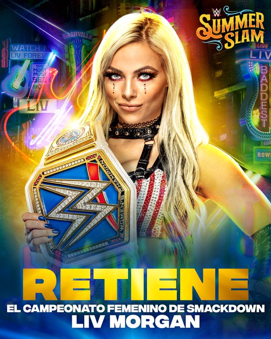 Durante las transmisiones de SummerSlam 2022 a través de Peacock y WWE Network, la superestrella Liv Morgan logró retener el Campeonato de Mujeres de SmackDown tras derrotar en mano a mano a Ronda Rousey.