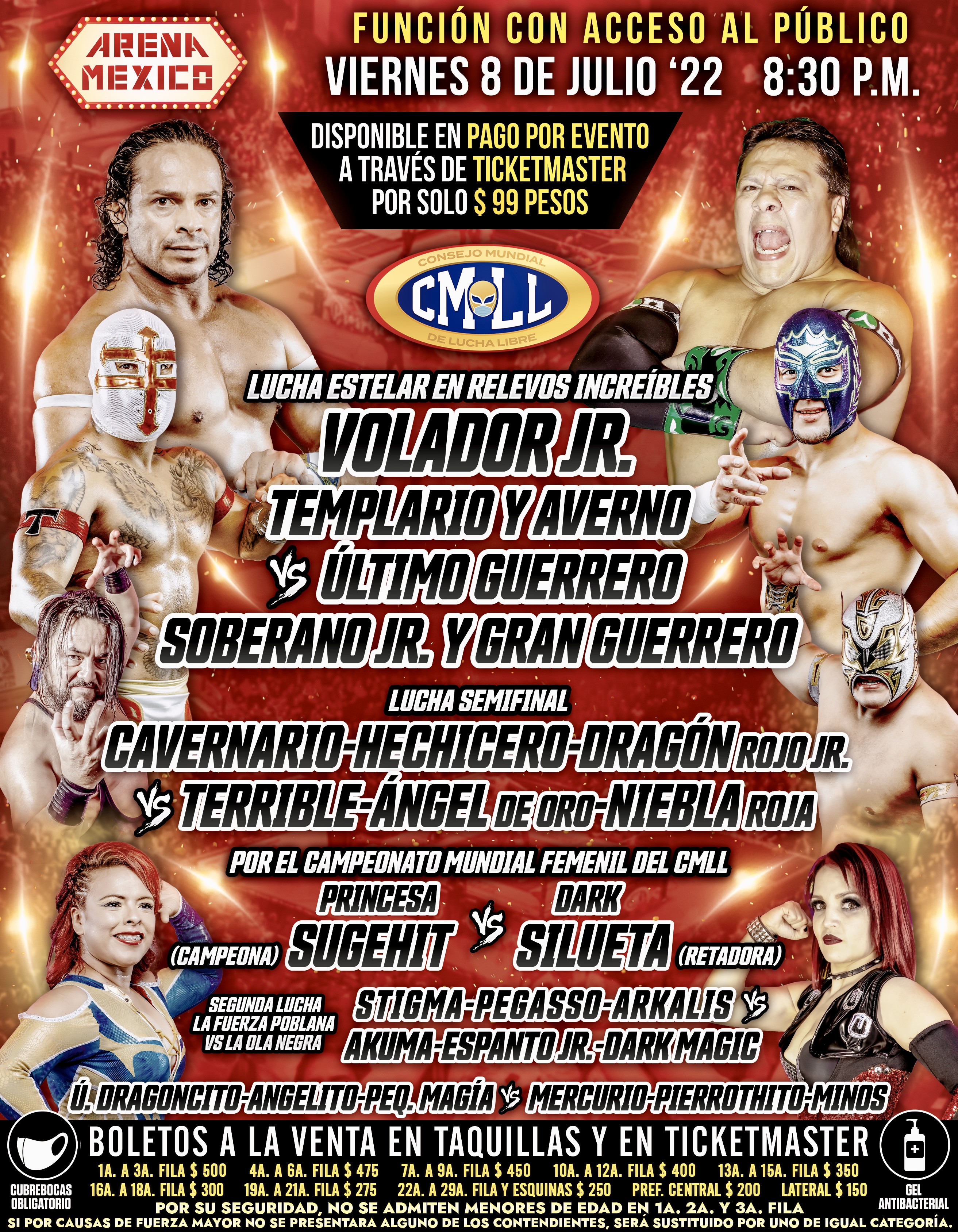 La promoción Consejo Mundial De Lucha Libre realizó una nueva edición de CMLL Viernes Espectacular desde la Arena México. Este show tuvo como principal atractivo una lucha por equipos enfrentó a Último Guerrero, Gran Guerrero y Soberano Jr. contra Volador Jr., Templario y Averno.