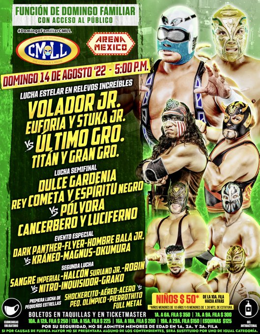 Sin mayor dilación, te presentamos los resultados CMLL Domingo Familiar 14 de agosto de 2022.