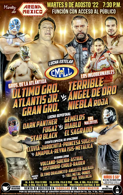 Sin mayor dilación, te presentamos los resultados CMLL Martes de Arena México 9 De Agosto De 2022