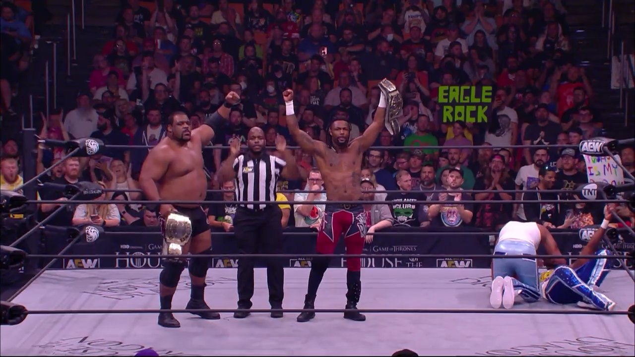 De este modo, Swerve in our Glory retienen los Campeonatos Mundiales por Parejas de AEW en su segunda defensa titular. Keith Lee y Swerve Strickland cumplen hoy 37 días desde su victoria titular en la primera noche de AEW Dynamite: Fyter Fest. El equipo derrotó a The Young Bucks y Team Taz el 13 de julio en Savannah, Georgia para levantar sus primeros cinturones en All Elite Wrestling.