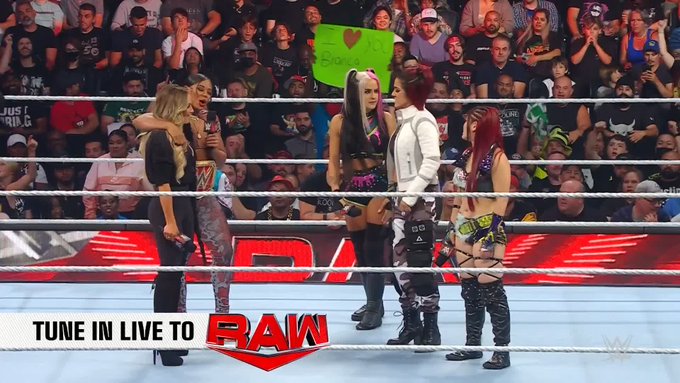 Cuando parece Bayley, Iyo y Dakota tienen la ventaja numérica, llegan las oponentes de las presentes, Alexa Bliss y Asuka quienes llegan para su lucha en equipos, Bayley prefiere no irse a los puños y ella tanto Bianca despejan el ring para que sus respectivas compañeras tengan su lucha en el torneo por los títulos en pareja femeninos.