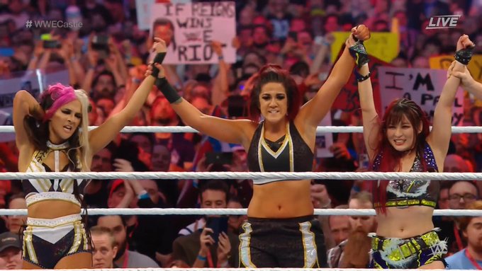 Durante las transmisiones de Clash at the Castle a través de Peacock y WWE Network, el equipo Damage Control logró su primera victoria como tercia ante Bianca Belair, Asuka y Alexa Bliss.