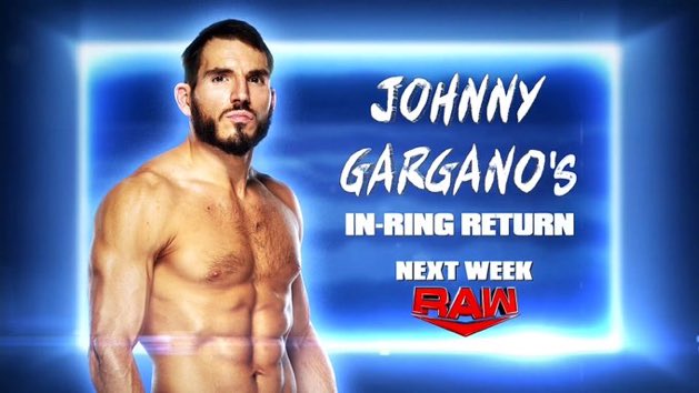 Johnny Gargano regresará a la acción en el próximo WWE RAW