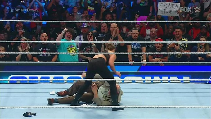 Rousey se quedó viéndolo, soltó el micrófono, y se acercó hacia Adam, quien pidió perdón de todas las formas que pudo pero no evitó que la excampeona de SmackDown lo derribase y le aplicase un Armbreaker brutal, para dejarlo tendido sobre la lona y contra un esquinero.