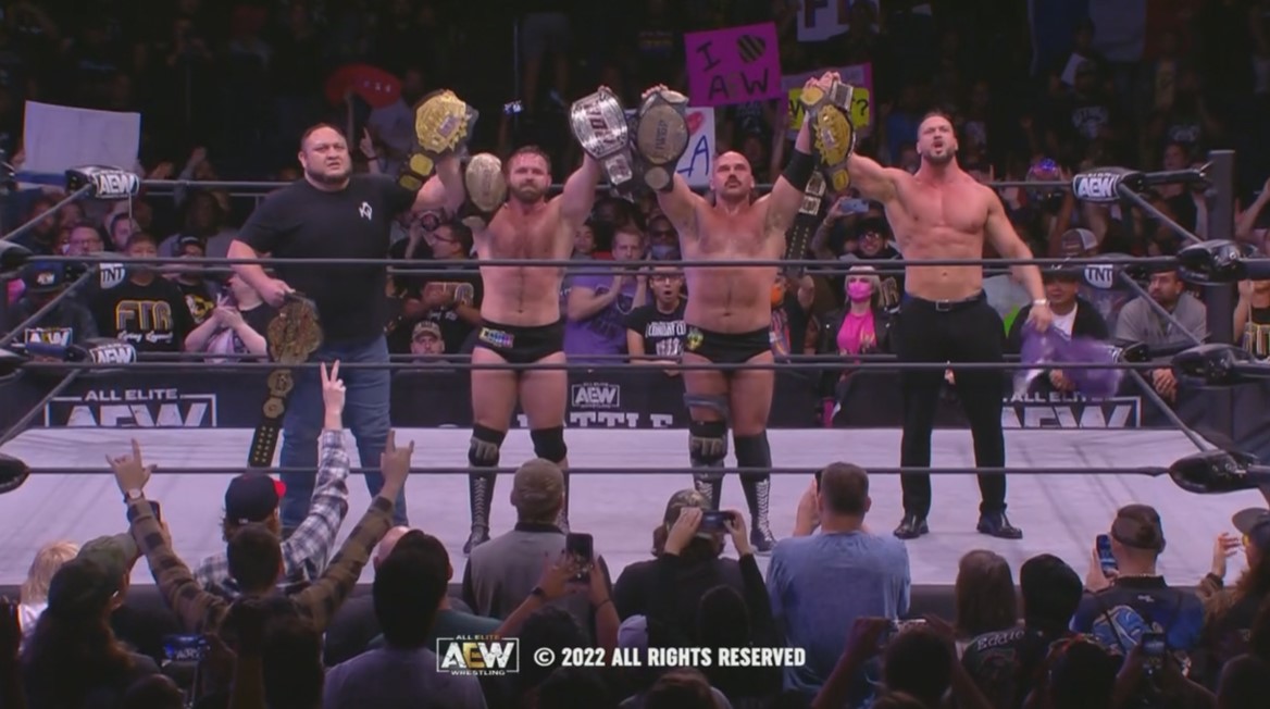 Los actuales campeones se mostraban muy fuertes desde el inicio del combate, haciéndose con una primera ventaja. No obstante, los retadores conseguían igualar la contienda gracias a su poderío físico y a un impresionante trabajo de equipo. A lo largo del combate, los dos equipos se intercambiaron golpes de todo tipo llegando a estar ambos cerca de hacerse con la victoria. Finalmente, FTR conseguían hacerse con la victoria, reteniendo así el campeonato. Tras el combate, Gates of Agony y Brian Cage siguieron atacando a los campeones, pero fueron salvados por Wardlow y Samoa Joe.