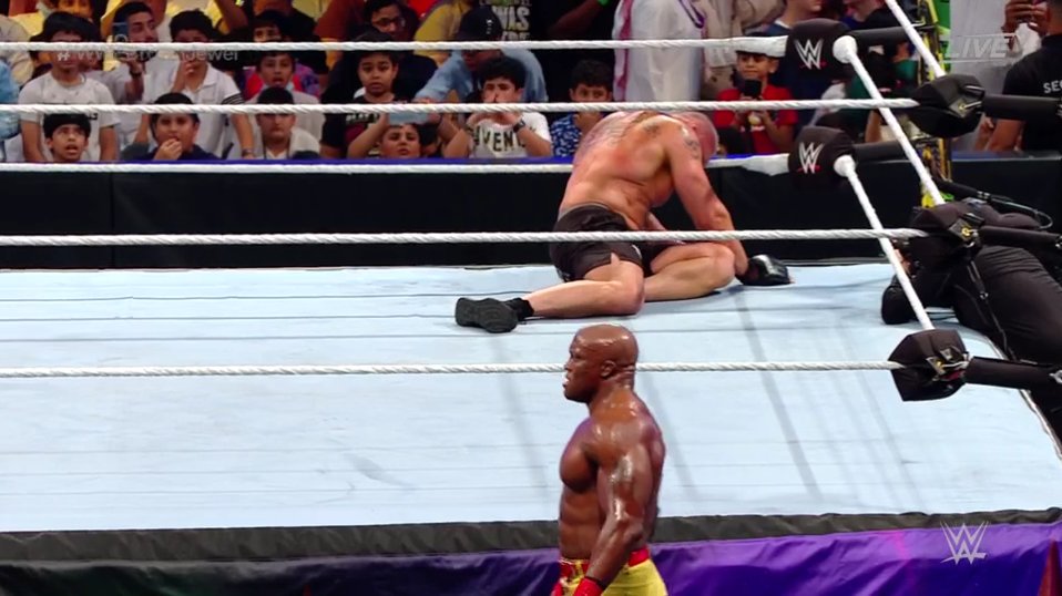 Este fue el primer enfrentamiento de la jornada Premium Live Event en Riyadh, Arabia Saudi. Lashley no esperó la campana y empezó a a atacar a su rival al punto de dañar su pierna con el escalón de acero. Brock logró levantarse para recuperar terreno con varios Suplexes y su F5, pero Bobby sorprendió marcando resistencia.
