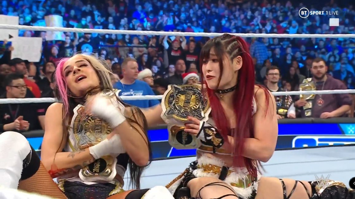 El regreso de Tegan Nox a WWE para aliarse con Liv Morgan provocó que las Campeonas Femeninas por Parejas, IYO SKY y Dakota Kai, tengan que estar alerta de nuevo para proteger su reinado. Esta noche, en SmackDown, los títulos estuvieron en juego en el que fue solamente el segundo combate de Nox desde su vuelta.