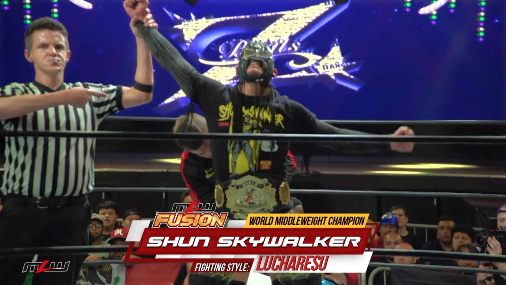Este es el primer título de Shun Skywalker en su segundo combate en MLW y siendo luchador activo de Dragon Gate Pro Wrestling. Ambas empresas firmaron un acuerdo el pasado año y hemos visto distintas apariciones de luchadores de Dragon Gate en MLW. A pesar de que este episodio de Fusion se ha emitido en diciembre, las grabaciones se dieron en septiembre.