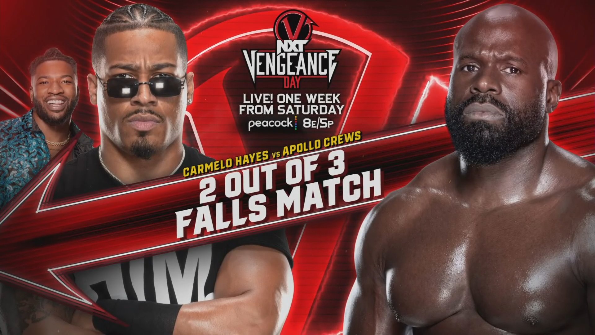 Durante las transmisiones de WWE NXT a través de USA Network, se ha confirmado que Carmelo Hayes y Apollo Crews se enfrentarán en Vengeance Day 2023, el próximo Premium Live Event de la marca de desarrollo.