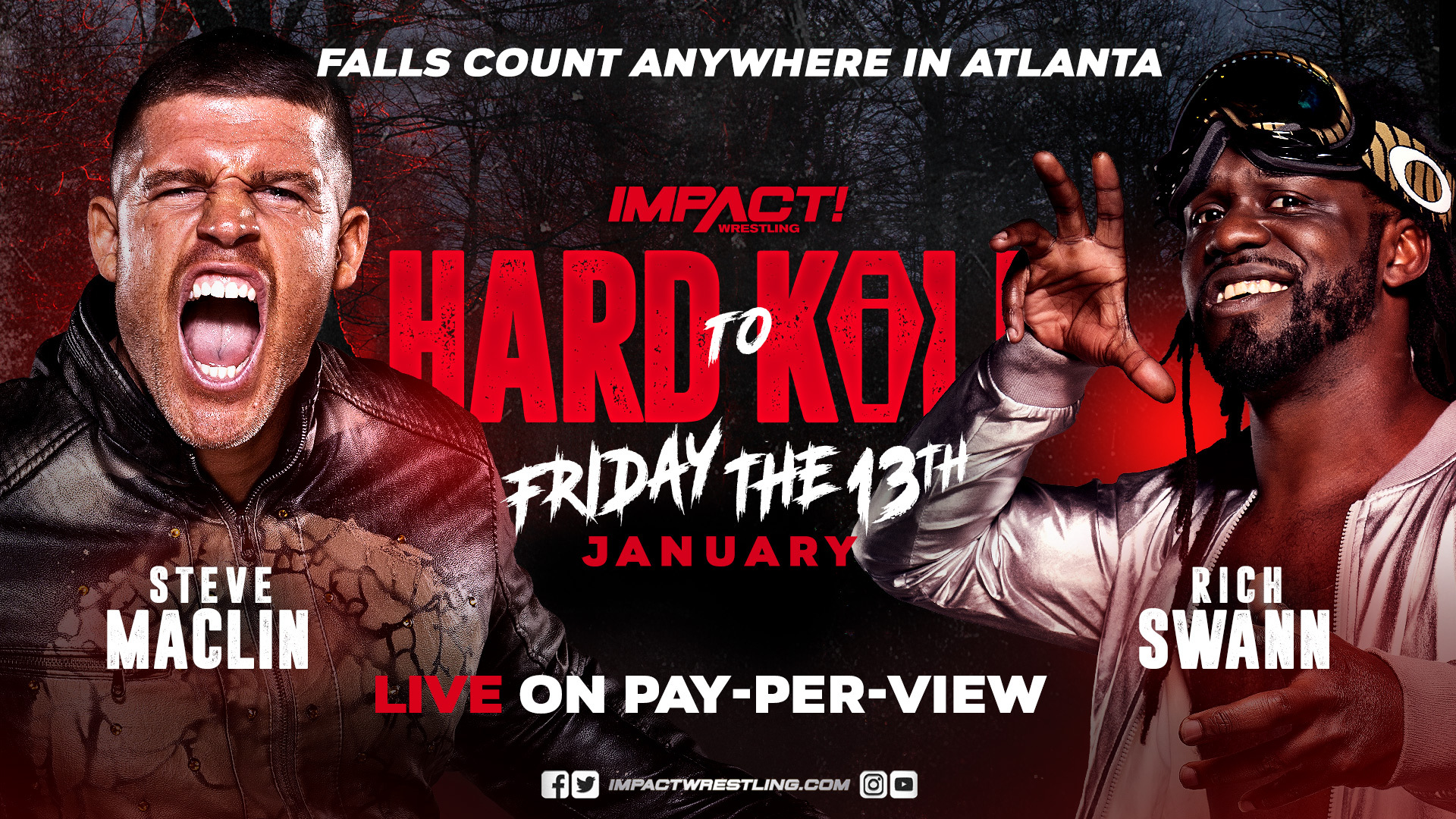 Durante la más reciente edición semanal de IMPACT Wrestling, se confirmó que, luego de que el combate entre Rich Swann y Steve Maclin de hace unas semanas terminara empatado, ambos volverán a enfrentarse en Hard To Kill 2023 en una ‘Falls Count Anywhere’.