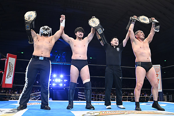 En los últimos momentos del combate, Minoru , Ren y El Phantasmo ejercieron sumisiones sobre sus contrincantes y Takahashi se vio obligado a rendirse perdiendo el combate y los títulos.