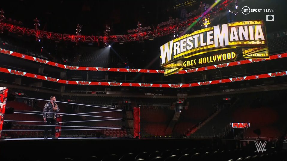 El episodio previo a The Showcase of the Immortals en Phoenix, Arizona vio un mensaje de The A-Town grabado horas antes de celebrarse el episodio de esta noche."Segun tú, John Cena, este sábado en WrestleMania lo pierdo todo. Pero es allí donde te equivocas. Por alguna razón, el mundo piensa que lograste exponerme, cuando en realidad te pusiste en evidencia al no poder ver el futuro frente a los ojos".