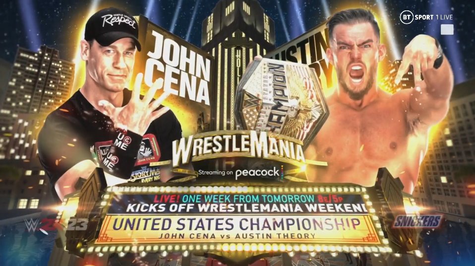 Durante la retransmisión de Friday Night SmackDown, Michael Cole y Wade Barrett han anunciado que John Cena y Austin Theory se verán las caras en el primer combate de la noche uno de WrestleMania 39, es decir, el sábado 1 de abril.