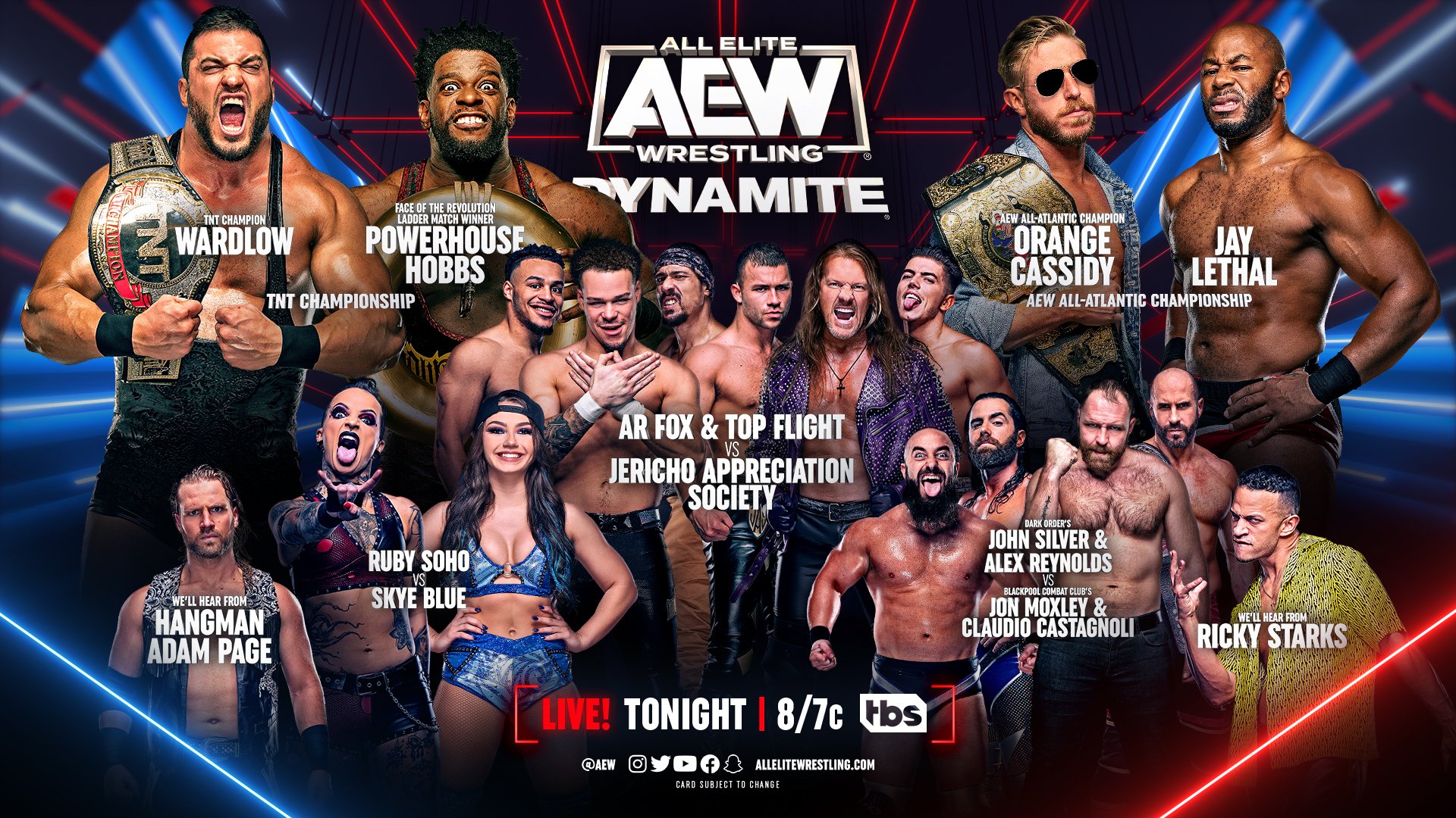 Llega el combate estelar de AEW Dynamite. Wardlow y Powerhouse Hobbs se enfrentan en un combate por el Campeonato de TNT. La lucha comienza en el parking.