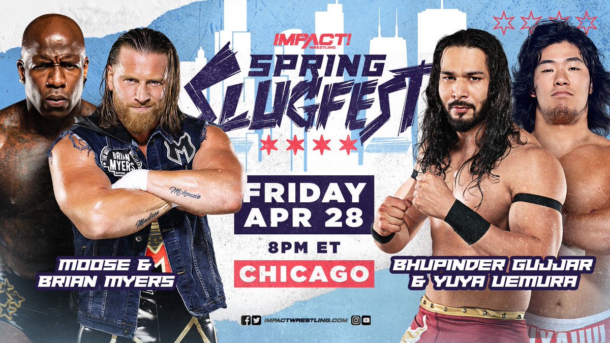 El próximo viernes 28 y sábado 29 de abril, IMPACT Wrestling celebrará la grabación de sus próximos shows semanales bajo el especial Spring Slugfest en el Cicero Stadium de Cicero, Illinois.