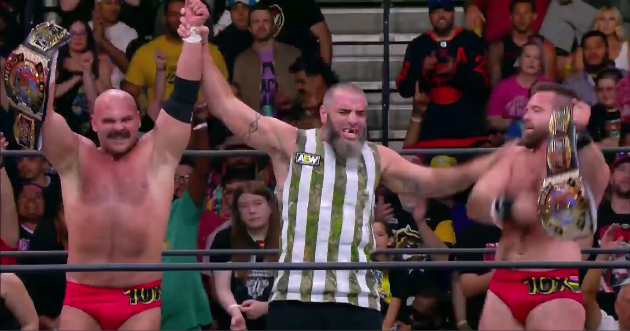 De este modo, FTR retienen los Campeonatos Mundiales por Parejas de AEW en su segunda defensa titular. Dax Harwood y Cash Wheeler obtuvieron estos cinturones hace 53 días en las transmisiones de AEW Dynamite. El equipo derrotó a The Gunns con sus carreras en juego el pasado 5 de abril en Elmont, New York para ganar estos cinturones por segunda ocasión en su carrera.