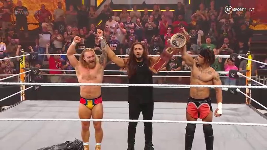 Estos últimos se llevaron la victoria, pero Joe Gacy salió después de la lucha para atacar a Lee. En esta situación, Mustafa Ali decidió subir al ring para atacar a Gacy y salvar a Wes Lee y Tyler Bate.