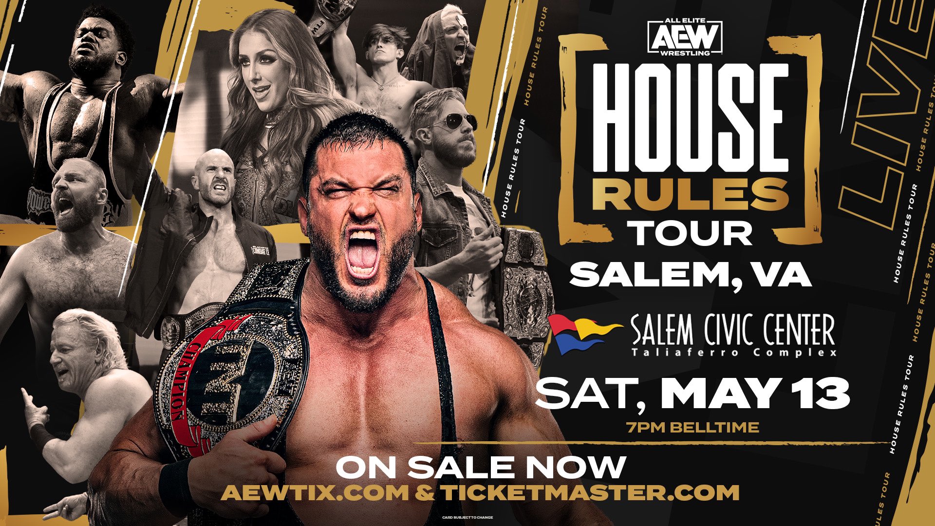 All Elite Wrestling celebró anoche su tercer show de House Rules Tour desde el Salem Civic Center de Salem, Virginia. A destacar tres defensas titulares y la victoria de "Hangman" Adam Page sobre Big Bill en un combate sin descalificación en el evento estelar de la noche. En esta noticia aportaremos los resultados del show, cortesía de Wrestling Bodyslam, y algunas de las imágenes más interesantes.