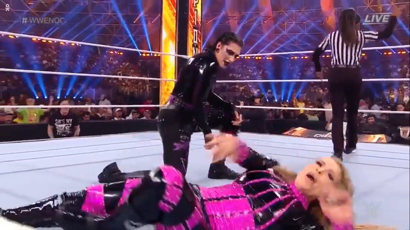 El combate duró escasos minutos, ya que Rhea Ripley derrotó a su rival sin problemas. La australiana dominó la lucha de principio a fin y no dejó que Natalya aplicara ni un solo golpe para, finalmente, acabar con su rival con un Riptide para seguir siendo la campeona,