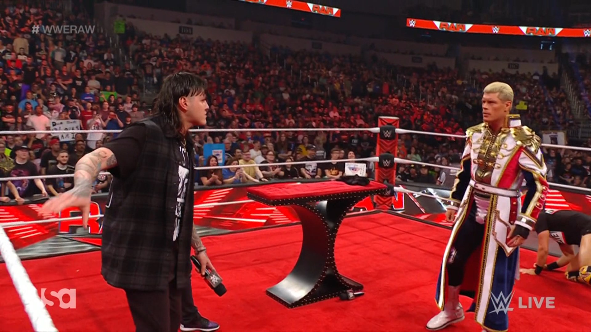 Luego de que Dominik Mysterio entregara el nuevo Campeonato Mundial Femenino a Rhea Ripley, Cody Rhodes apareció para recordar lo sucedido la semana pasada y solicitó un combate contra Mysterio, ya que no había recibido respuesta de Brock Lesnar. Aunque Mysterio no respondió al desafío de inmediato, finalmente se confirmó el enfrentamiento para WWE Money in the Bank 2023.