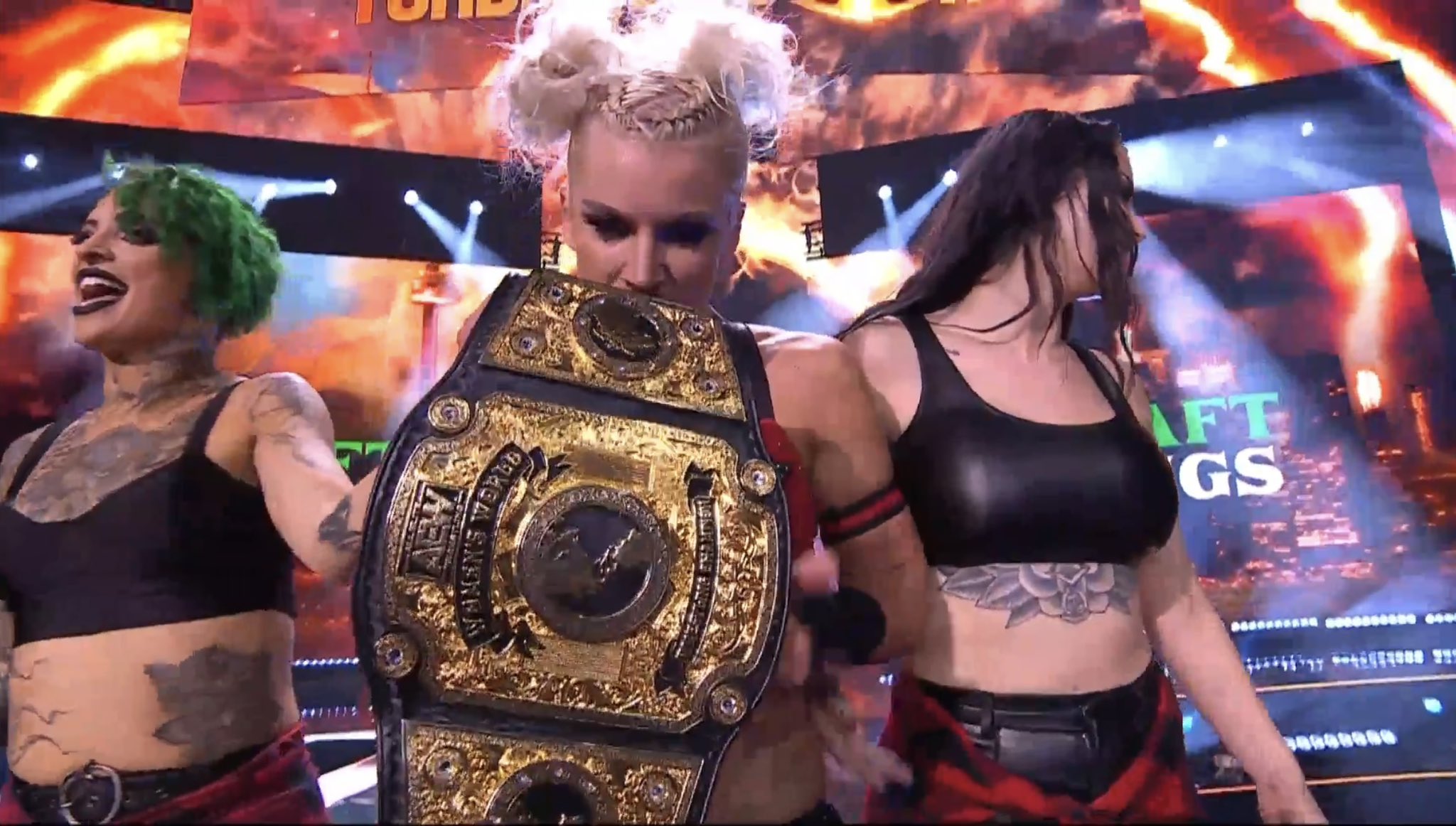 Toni Storm contó con el apoyo de Ruby Soho y Saraya durante la primera parte del combate, pero el árbitro decidió expulsarlas. Finalmente, cuando Toni se protegió con el árbitro como escudo en un momento del combate, la campeona aprovechó mientras Willow estaba distraída para aplicarle un Storm Zero.