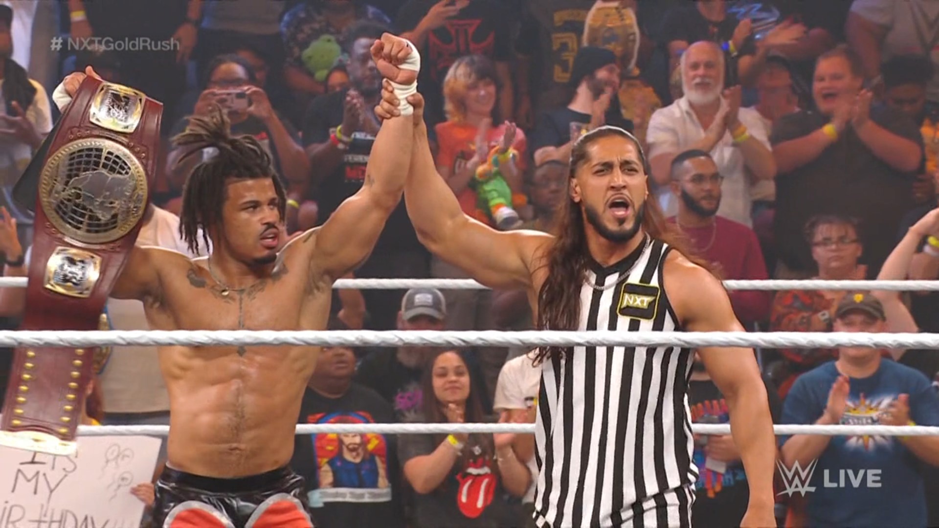 Este fue el primer enfrentamiento del especial NXT Gold Rush en el WWE Performance Center. A pesar de lo parejo que se encontraron ambos hombres, el arbitraje de Mustafa Ali afectó la velocidad y dinámica del combate en varios momentos, con conteos lentos e interferencias que afectaron al campeón y a su retador.