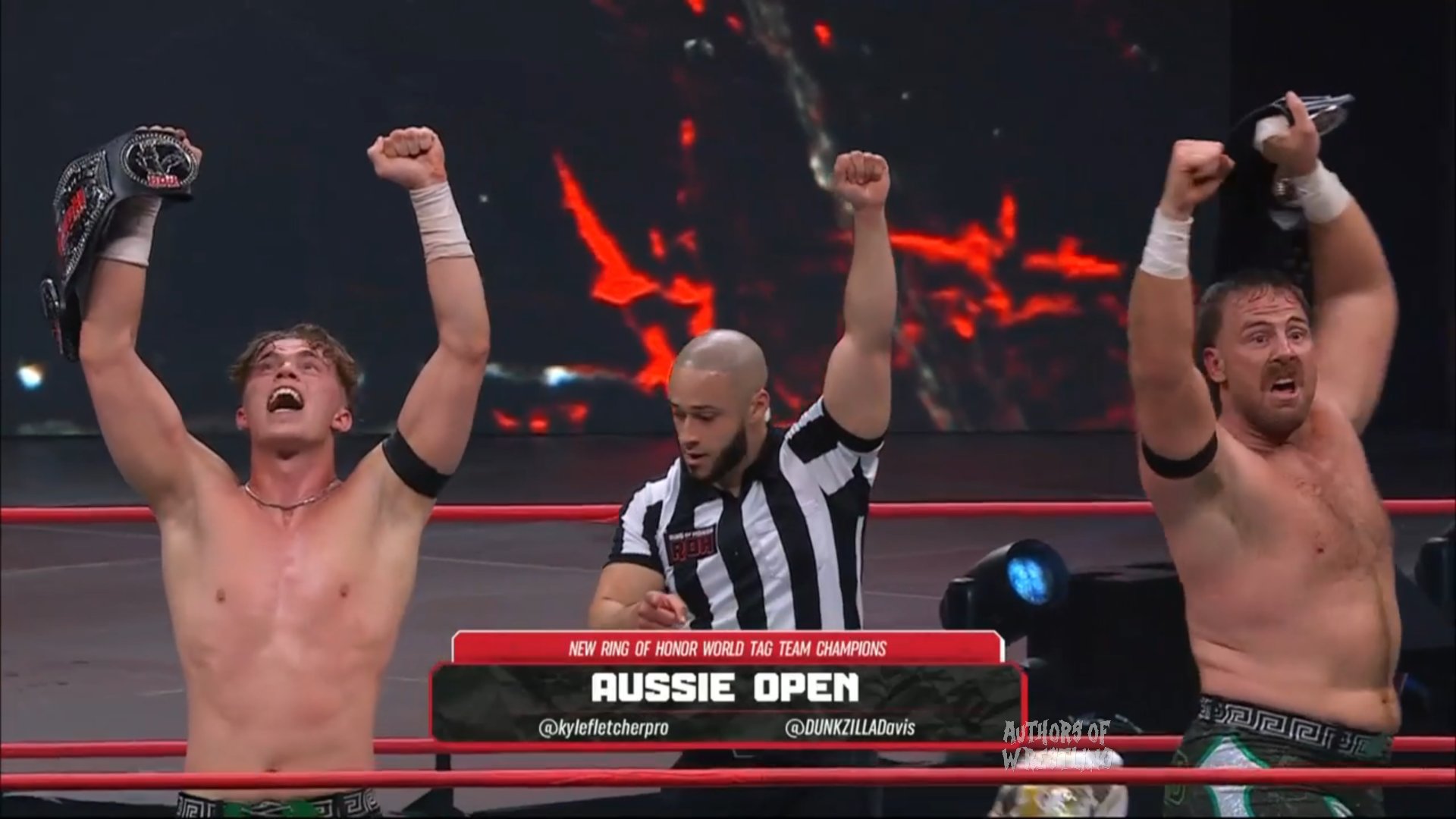 Kyle Fletcher y Mark Davis, representando a Aussie Open, se convirtieron en los nuevos Campeones Mundiales por Parejas de Ring of Honor después de hacerle la cuenta de tres a Trent Beretta. Esta es la primera lucha de Mark Davis desde que sufriera una lesión hace un par de meses en NJPW Wrestling Dontaku, por lo que sin duda le da aún más mérito haber ganado la lucha.