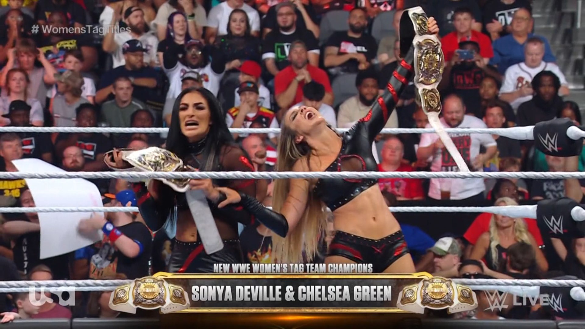 Durante las transmisiones de Monday Night RAW a través de USA Network, el equipo de Sonya Deville y Chelsea Green obtuvo los Campeonatos de Mujeres por Parejas tras derrotar a Liv Morgan y Raquel Rodriguez.