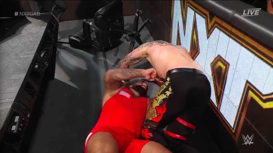 Baron Corbin aprovechaba su experiencia para llevarse la primera ventaja de la noche, pero rápidamente Steveson le daba la vuelta a la situación gracias a sus conocimientos en lucha libre olímpica. Finalmente, el combate terminaba en empate por doble conteo fuera del ring. Tras el combate, ambos luchadores continuaron atacándose.